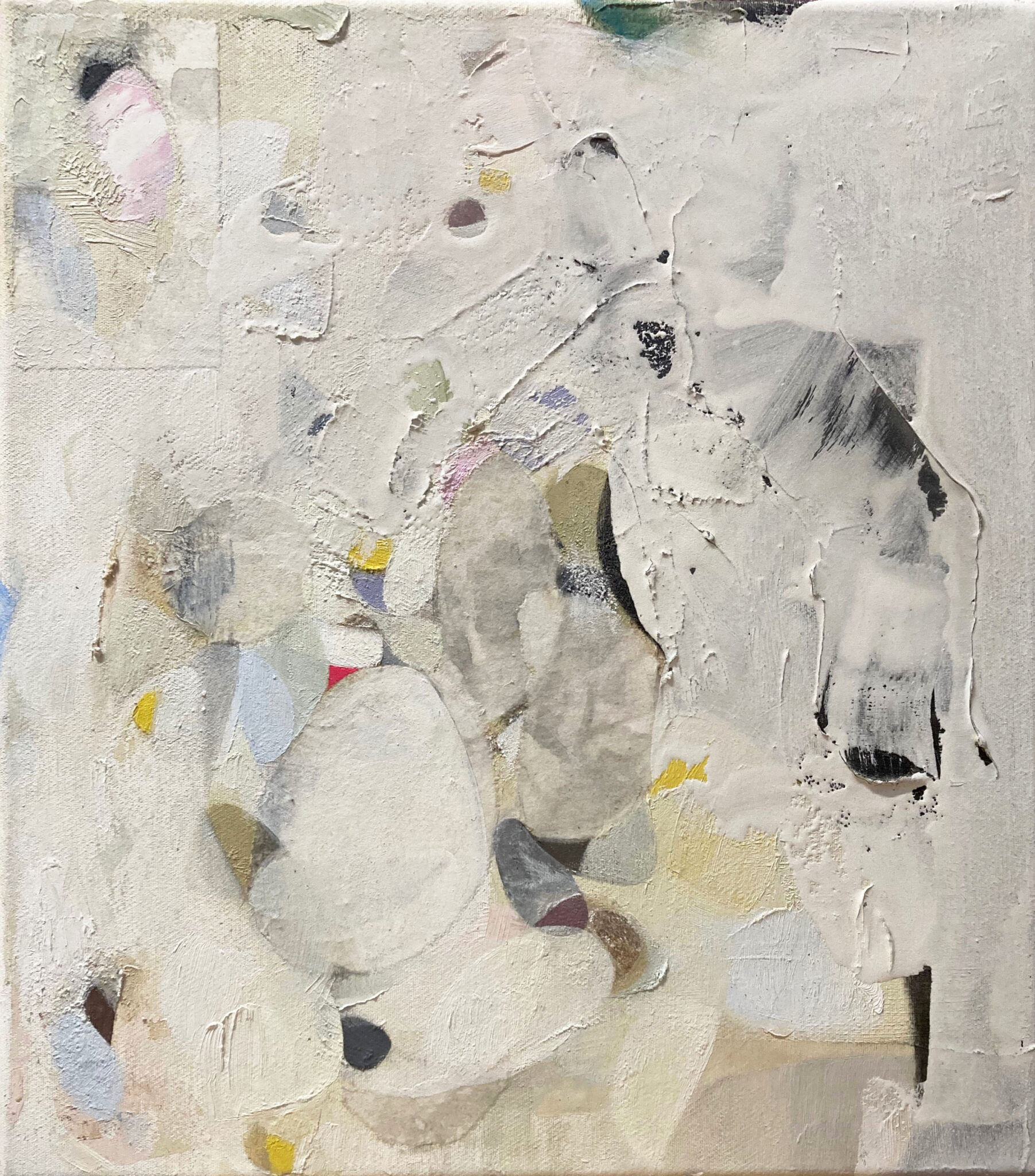 Daydream Nation, 2025, oil, acrylic, plaster, silver leaf, jute on unstretched canvas, 187 x 330 cmStill in the Wind, 2025, oil, egg tempera on canvas, 60 x 65 cmYesterday’s Feeling, 2025, oil, egg tempera, plaster, pencil on canvas, 60 x 65 cmDaylight 白日, 2025, oil, egg tempera on cotton, 24 x 20 cmGruppenblau (群青), 2025, mixed media on cotton, 20 x 24 cmSpuren, 2025, oil, egg tempera, Japanese paper, silver leaf, plaster on canvas, 40 x 35 cmNarben, 2025, oil, silver leaf on canvas, 60 x 50 cmAutumn Flow, 2025,